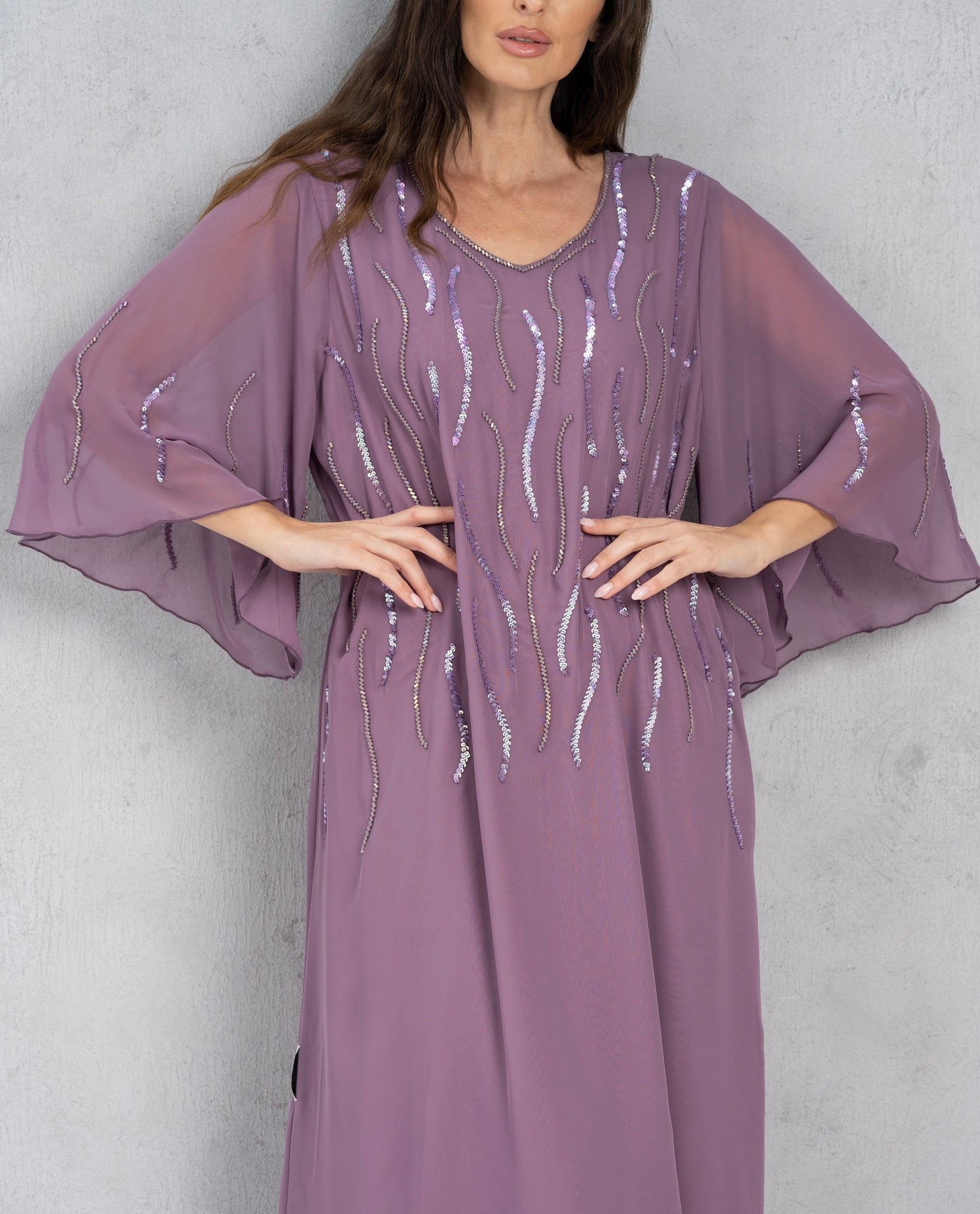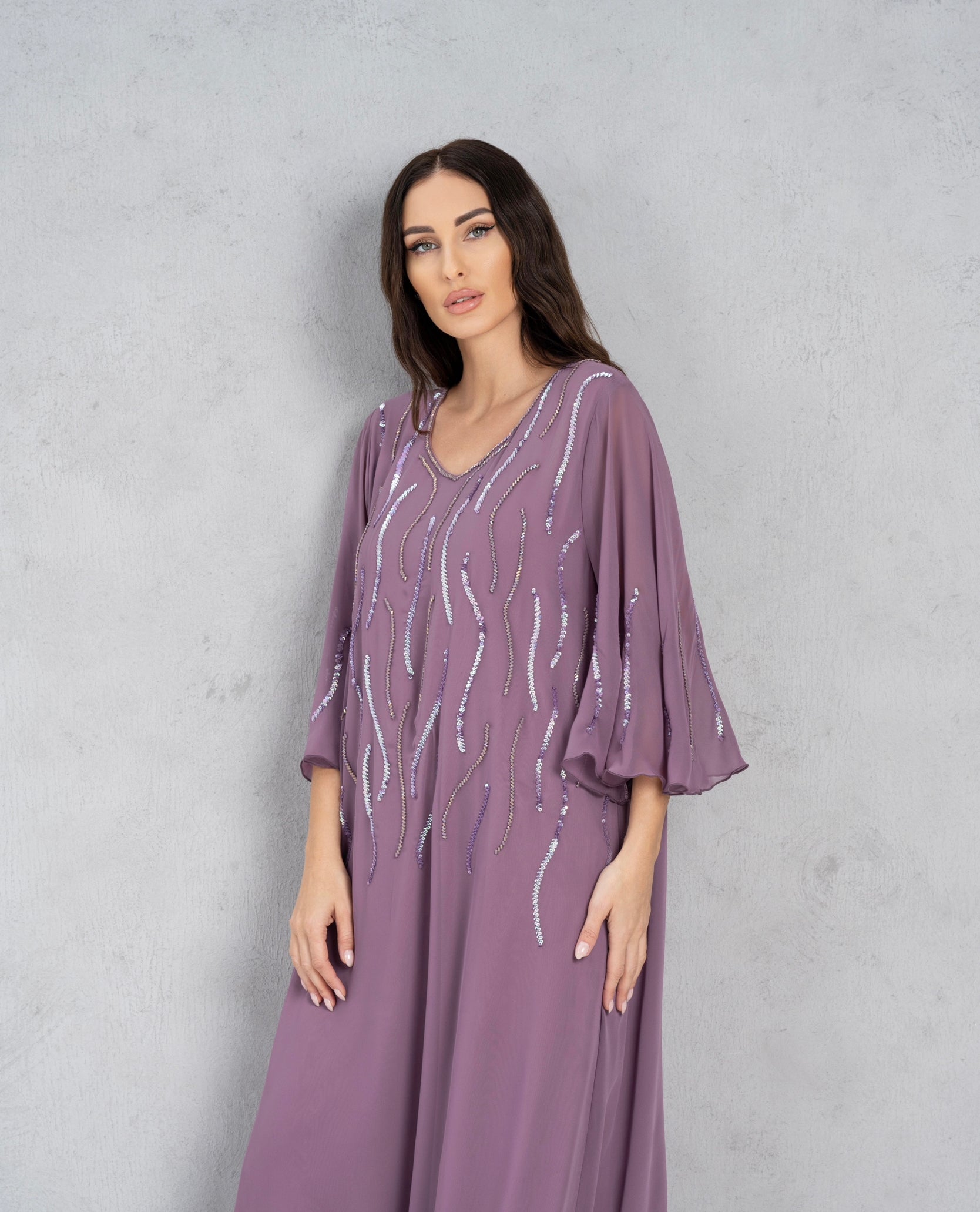 Elegant dress with beads.
