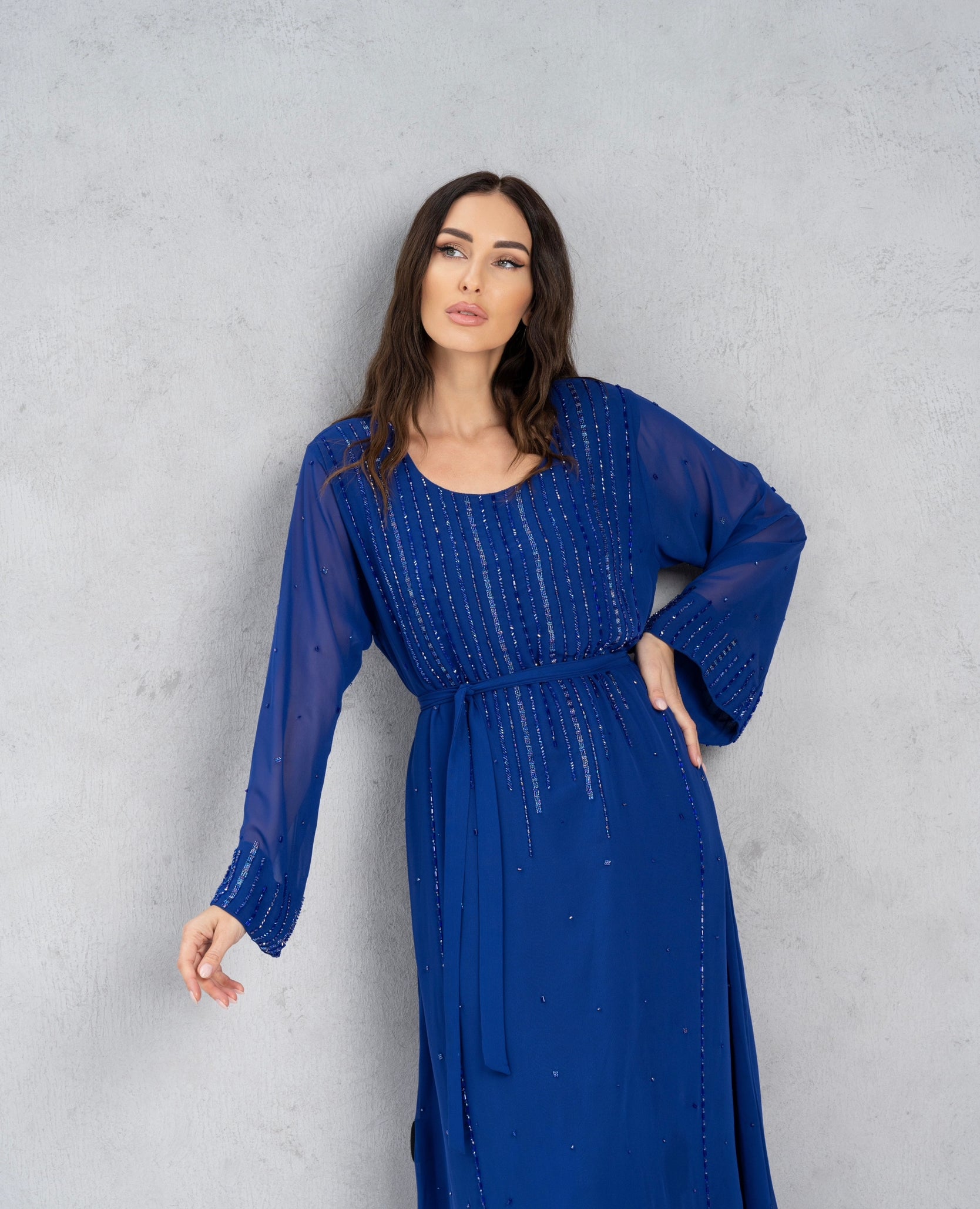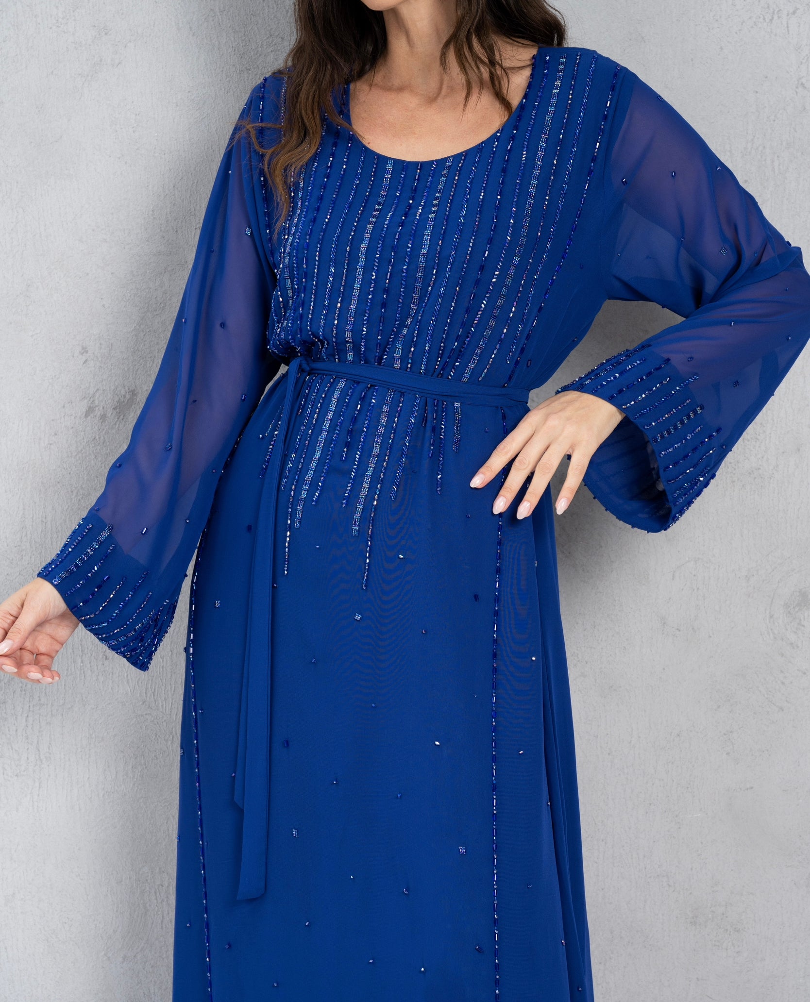 Elegant dress with beads.