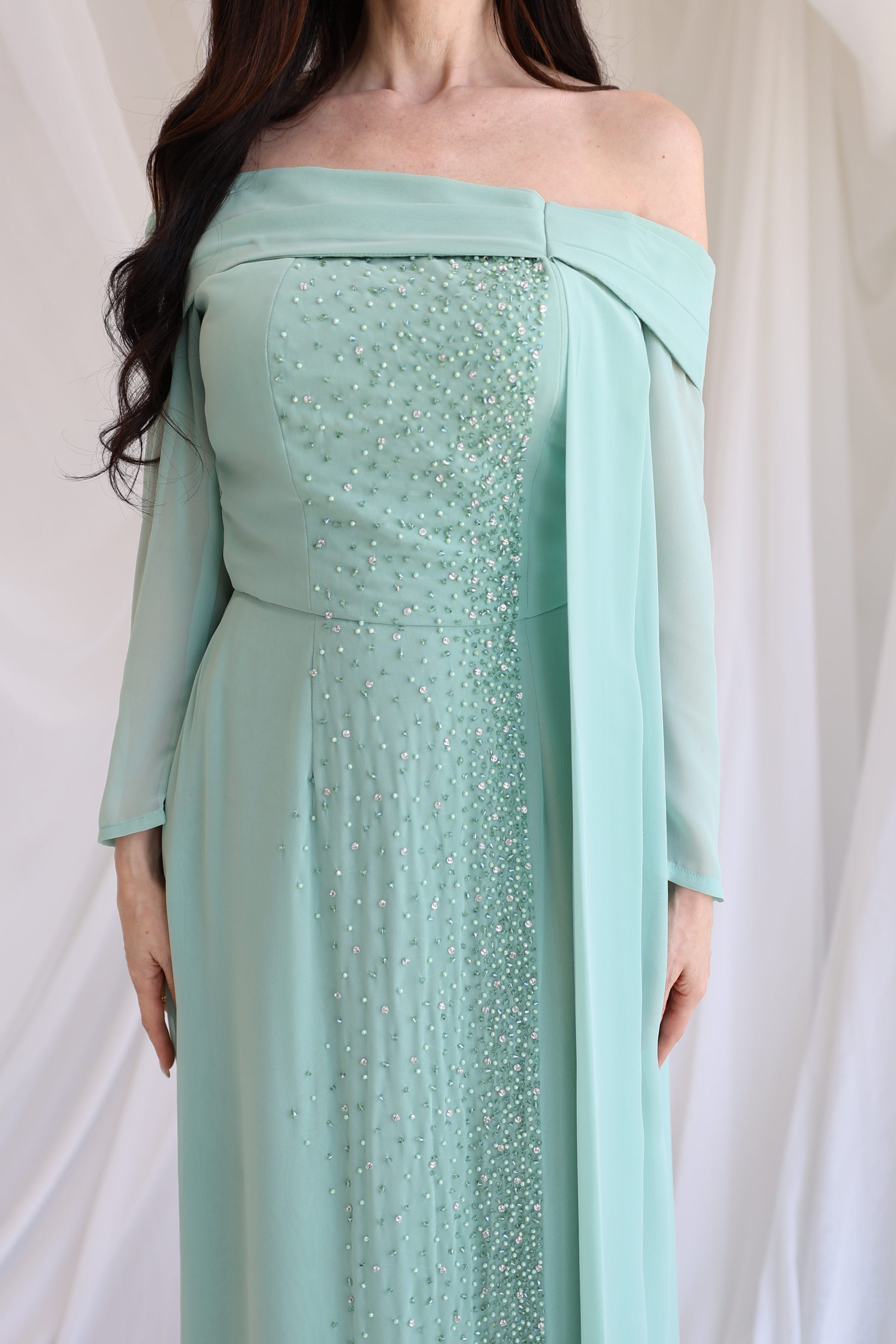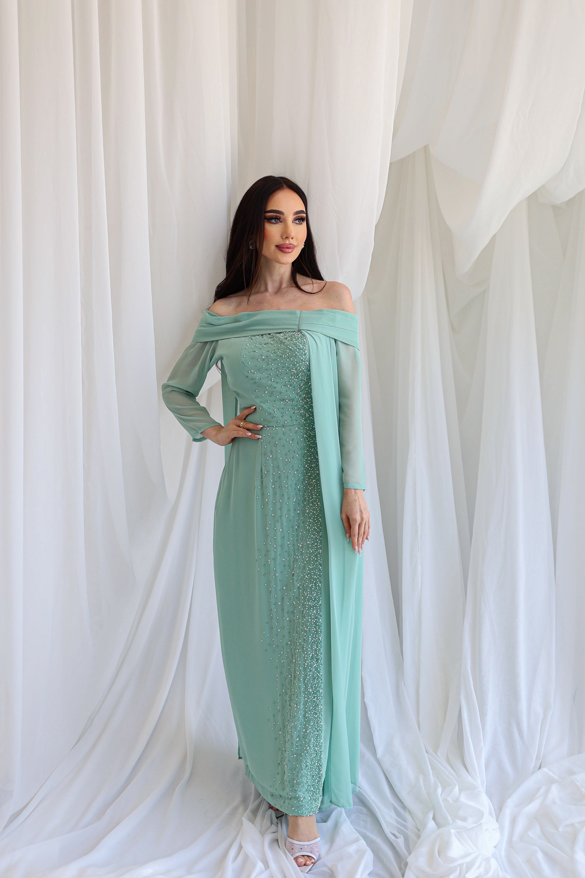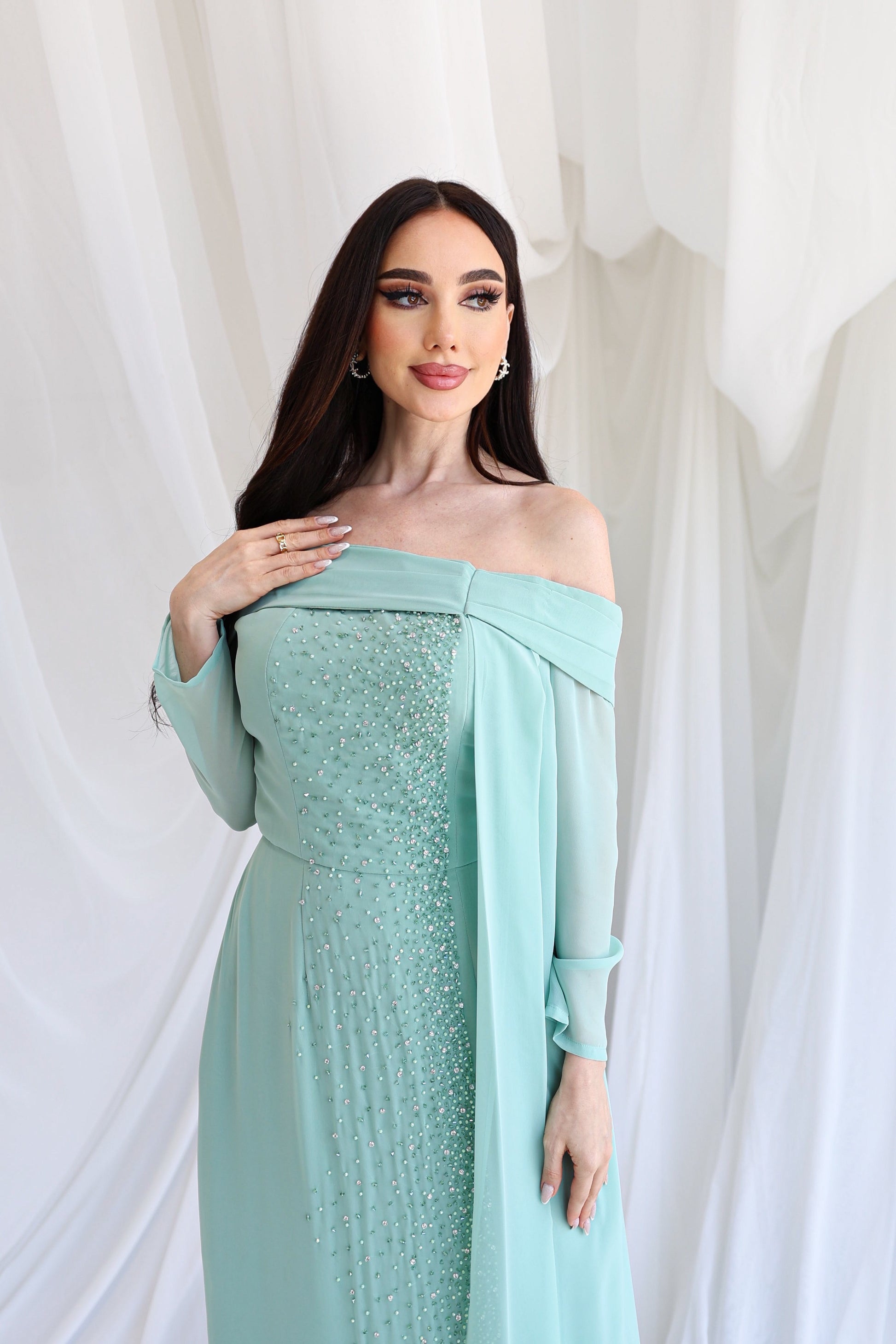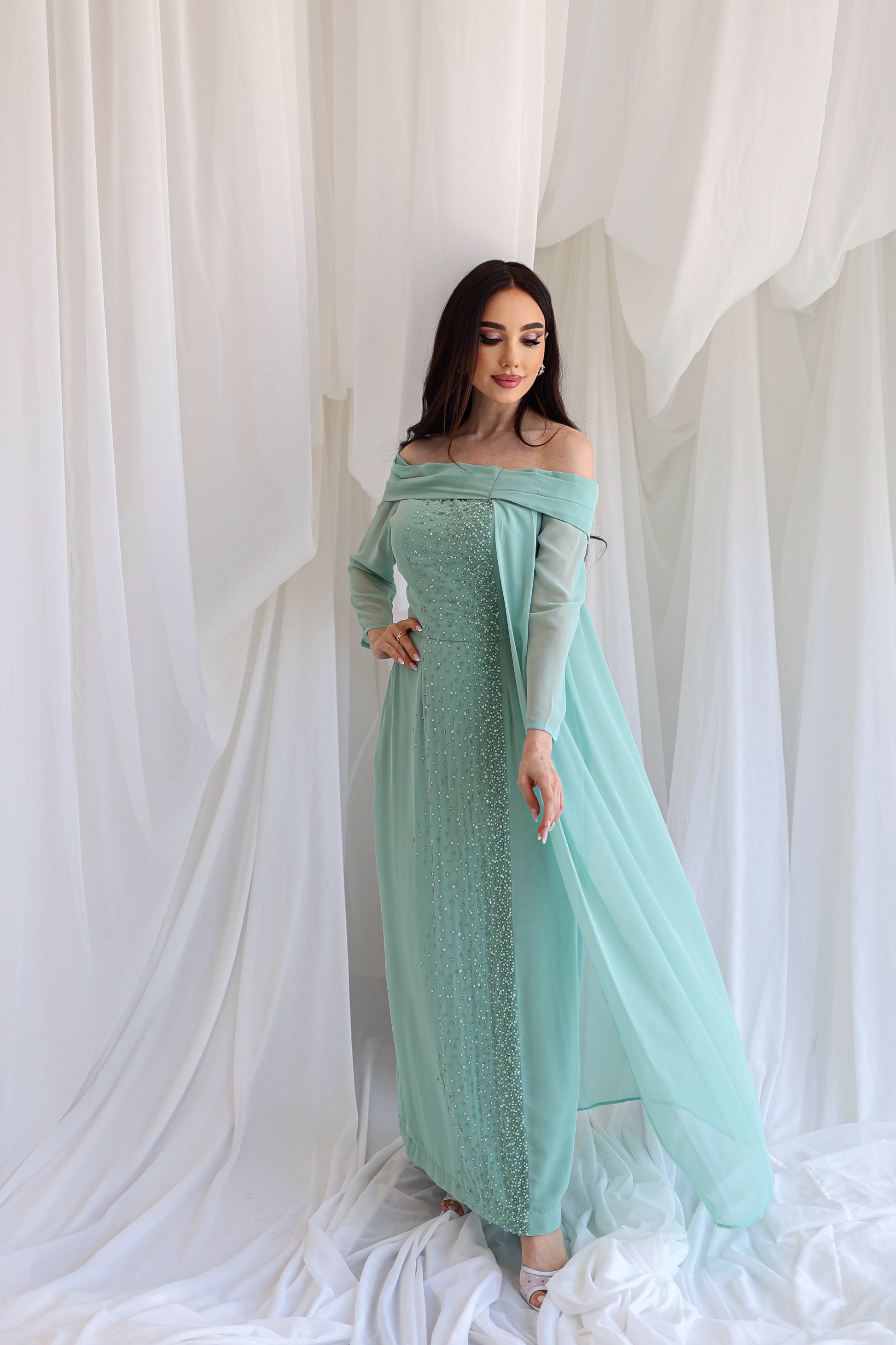 Elegant dress with beads.