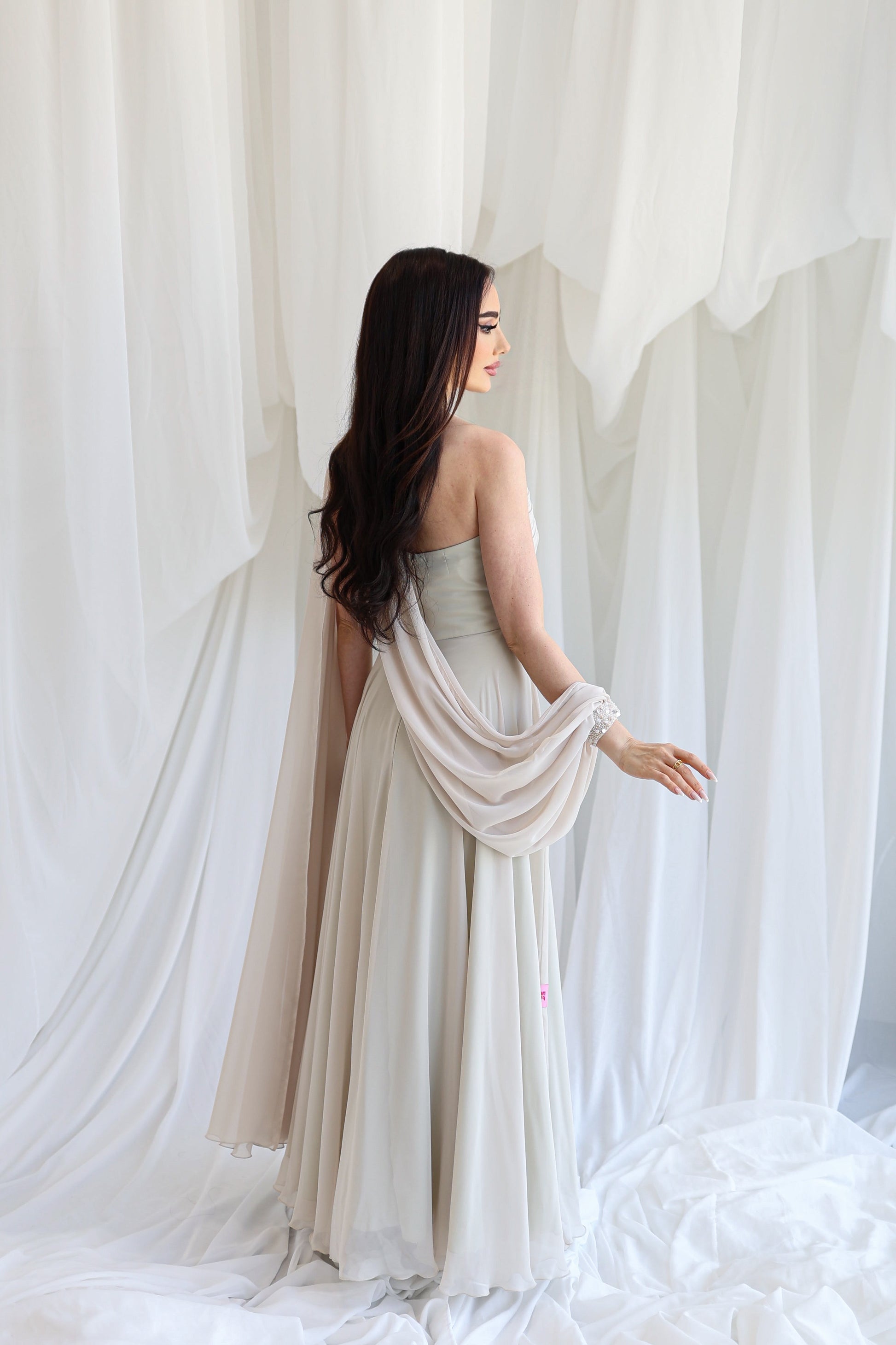 The Fabric on the model is Chiffon.