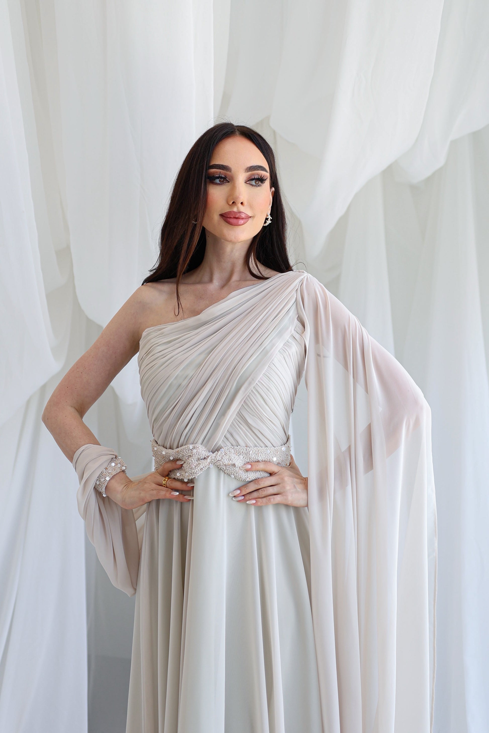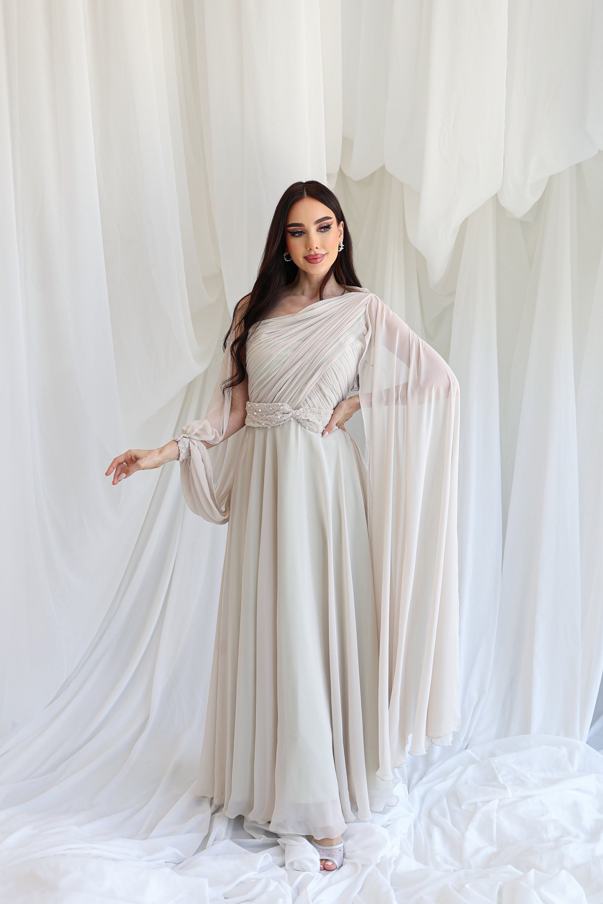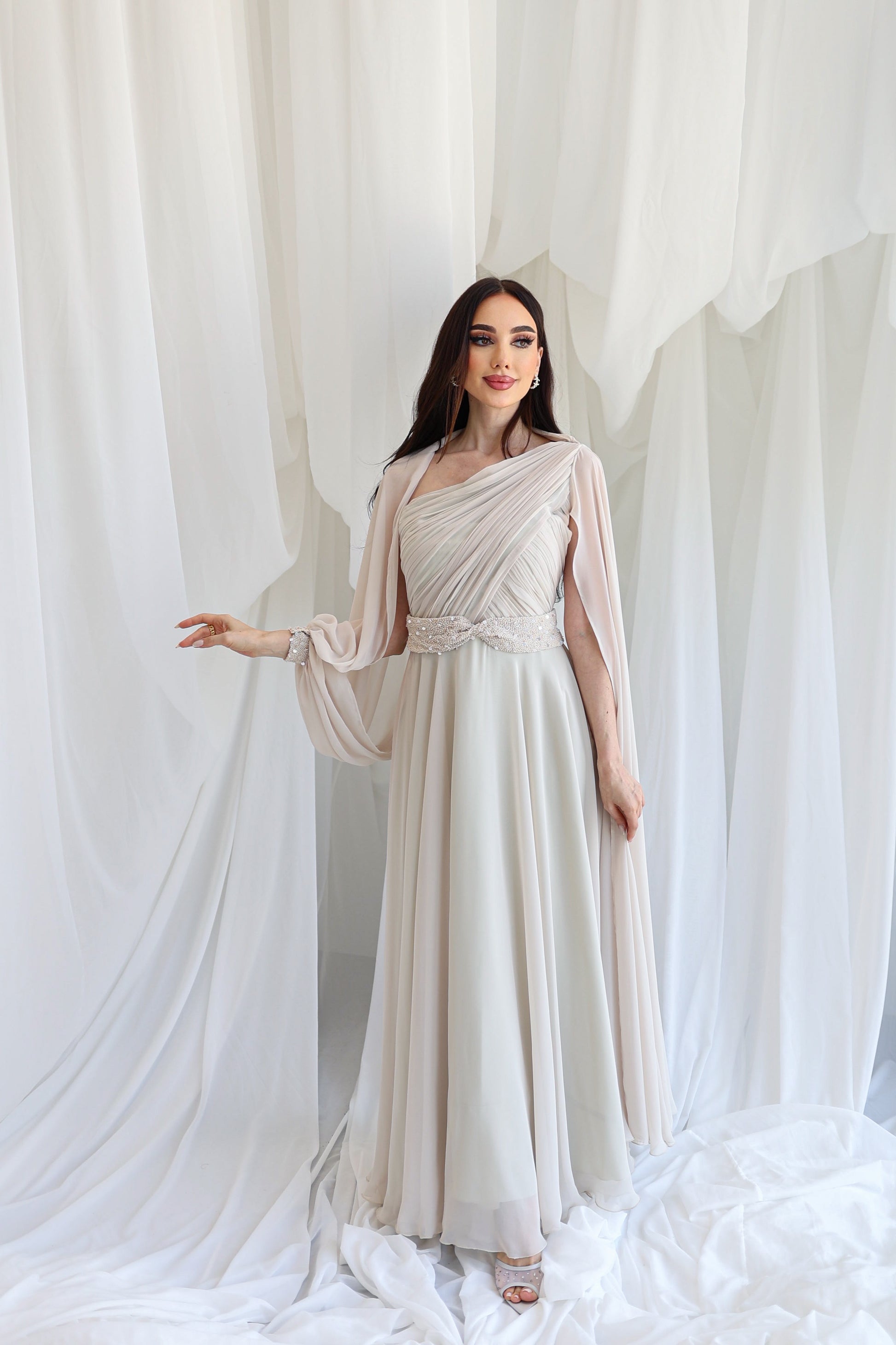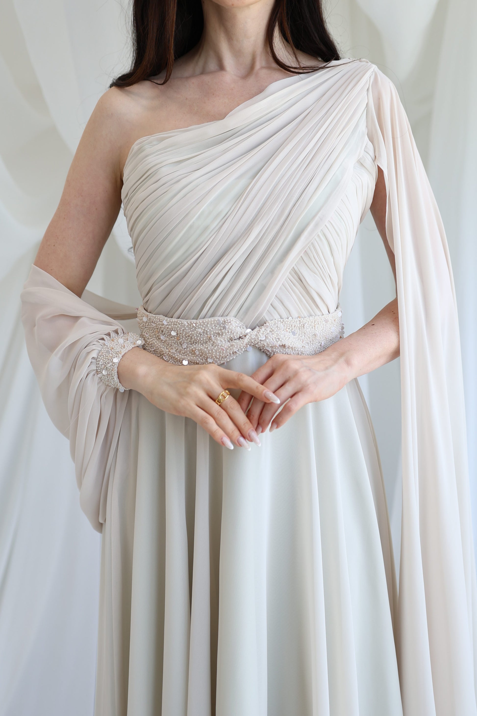 Elegant dress with beads.