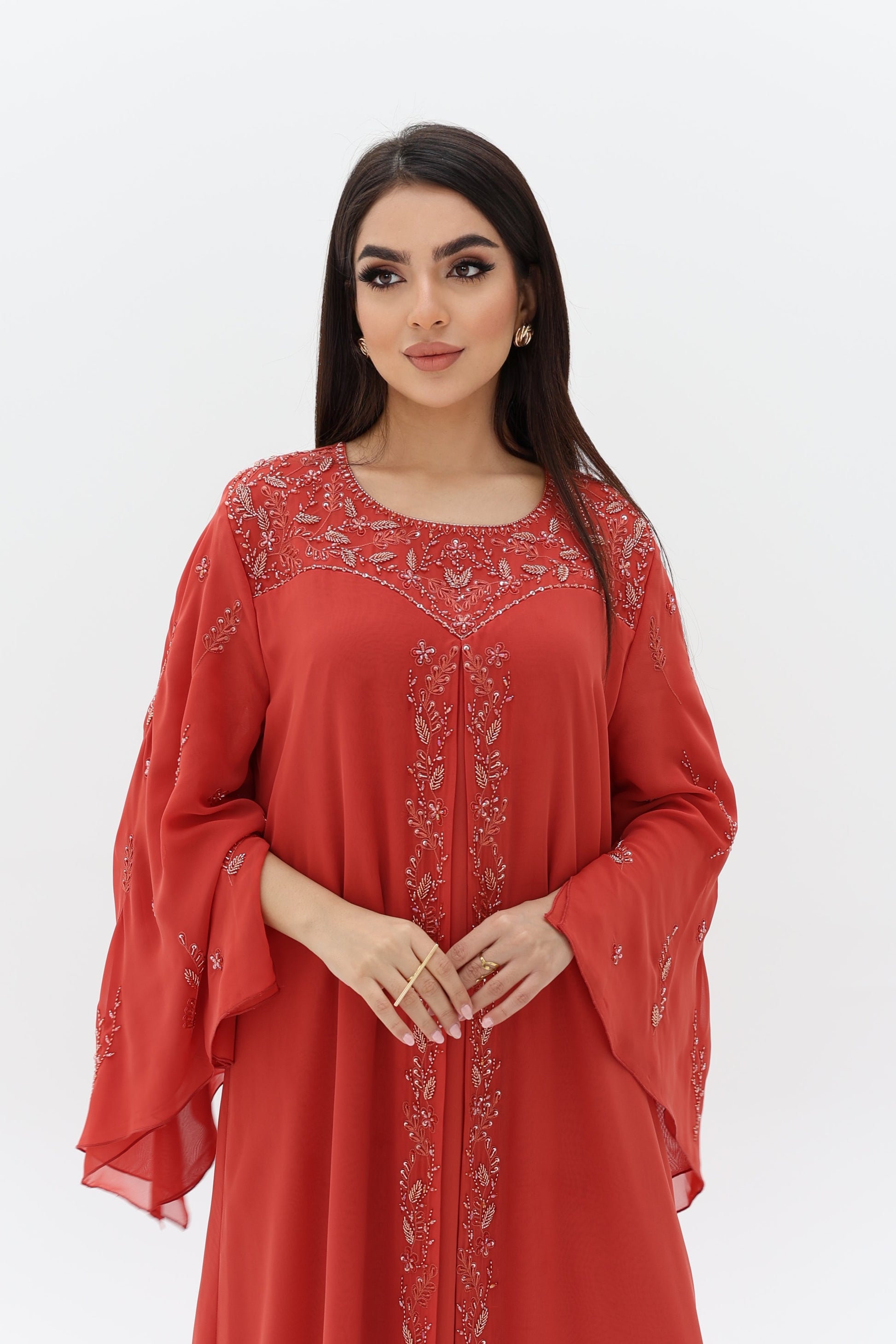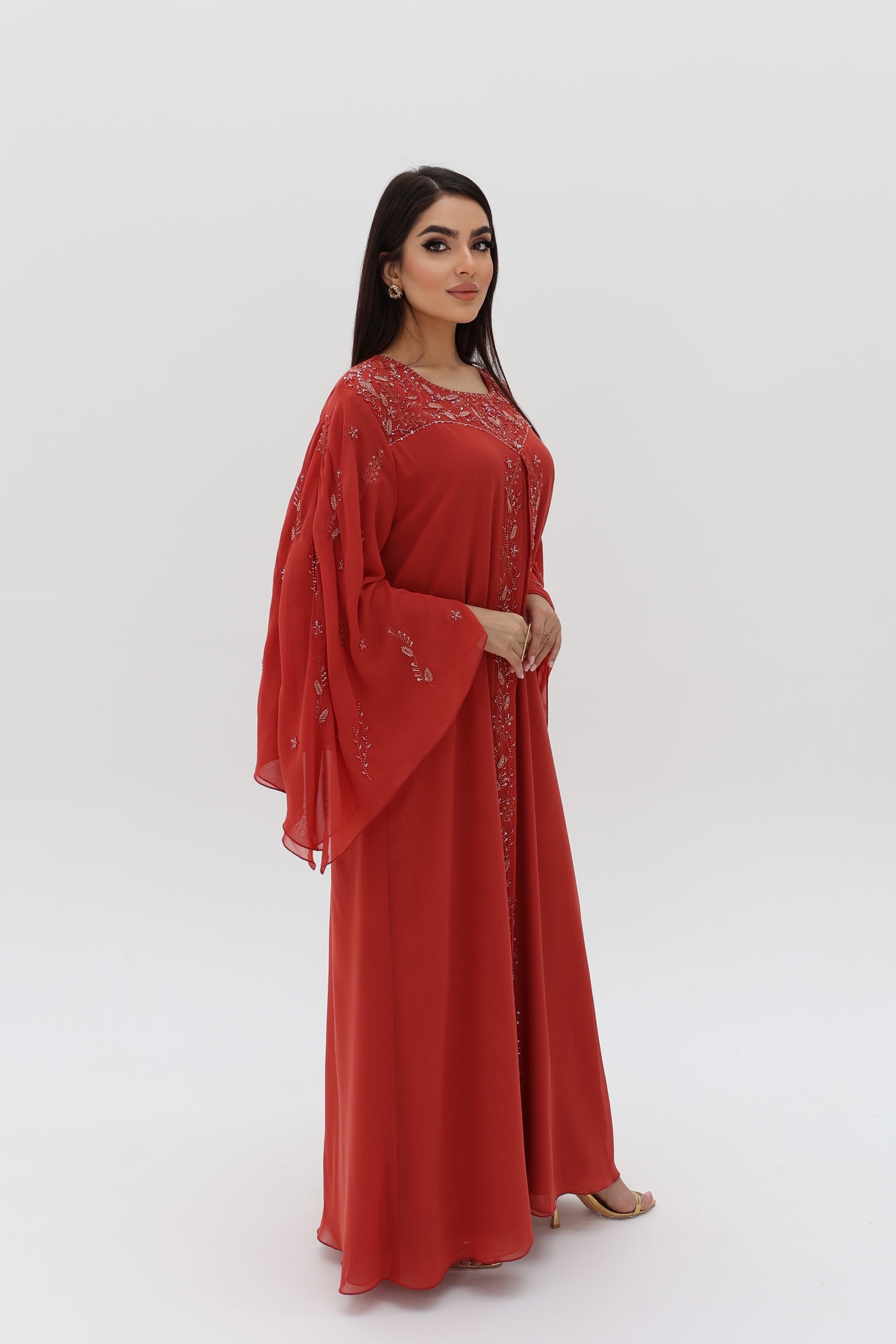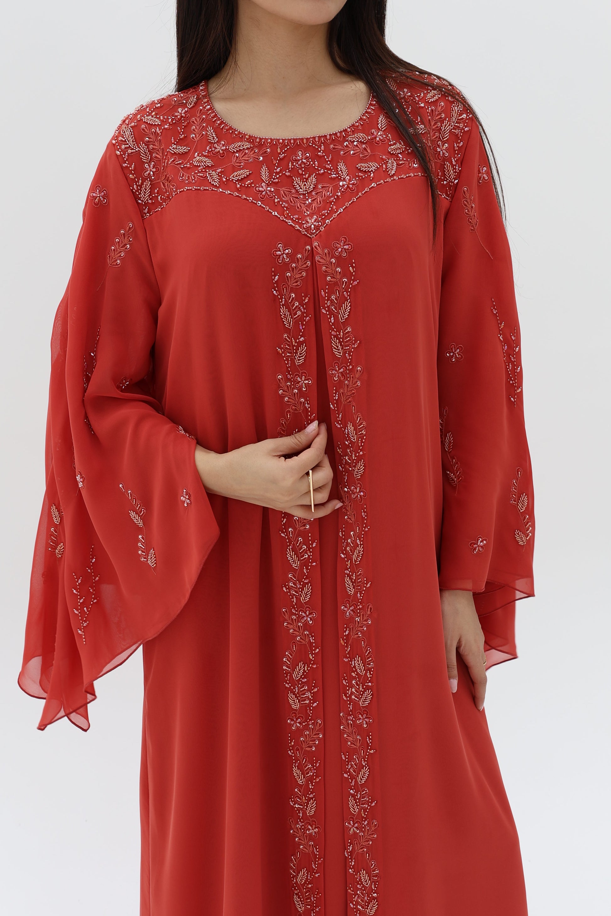 Elegant dress with beads.