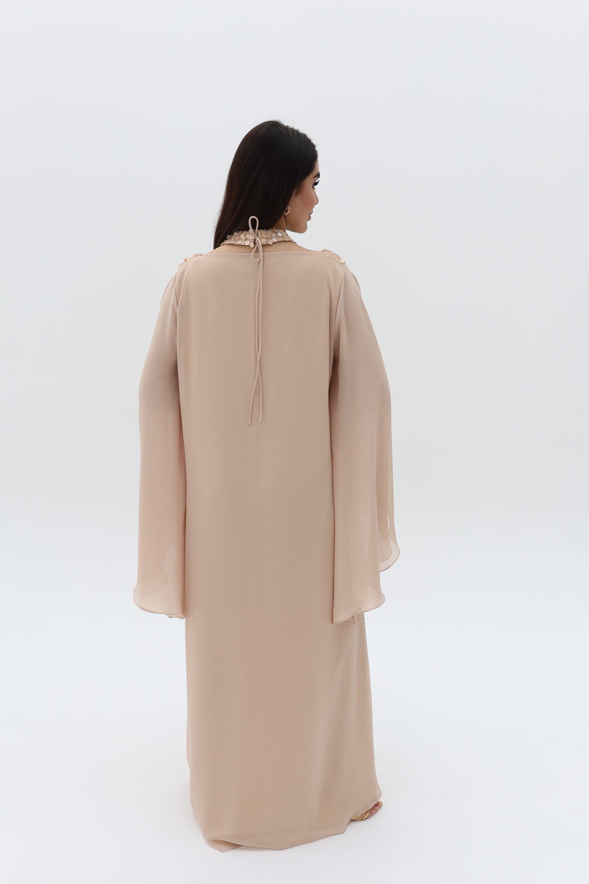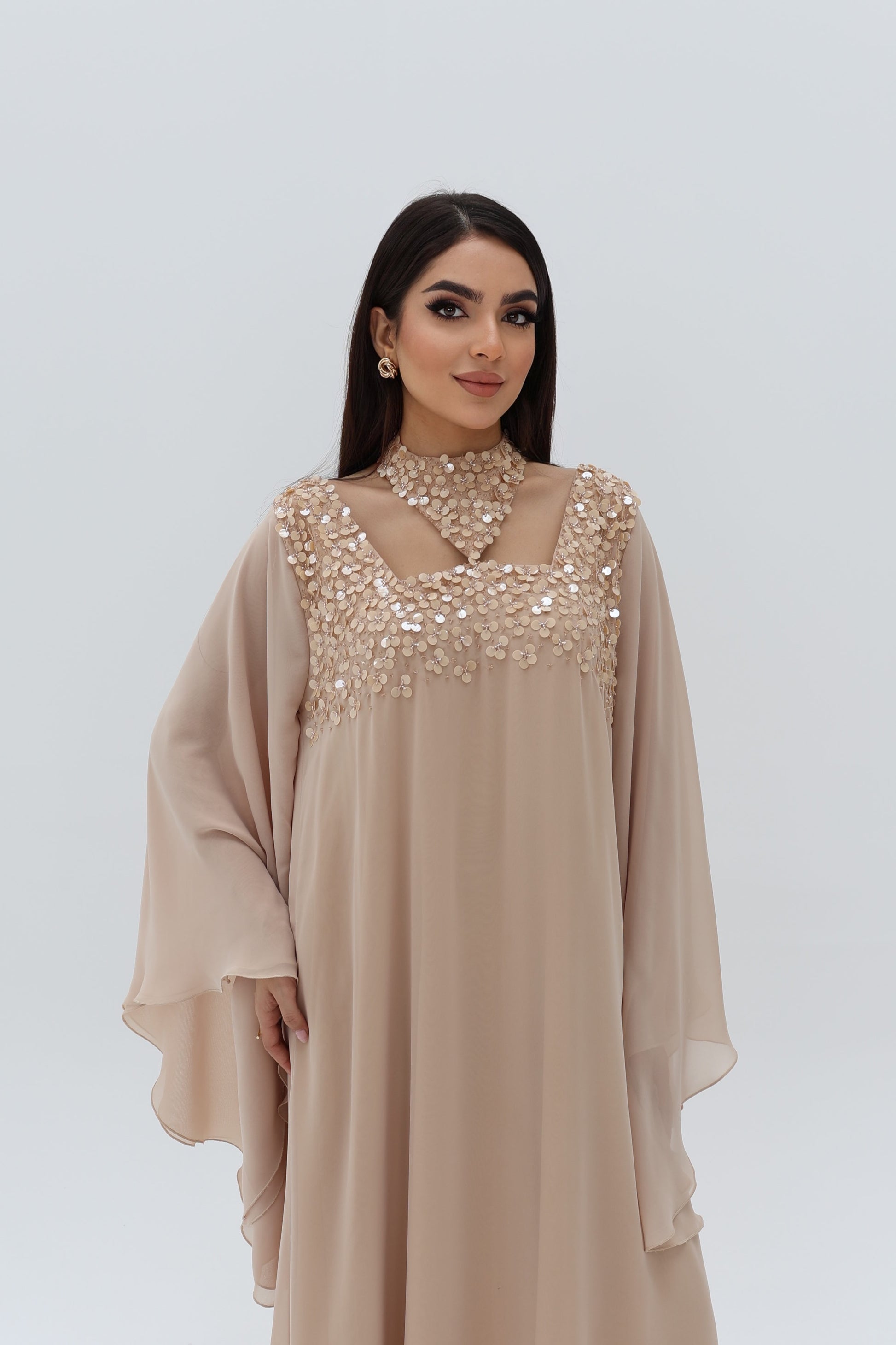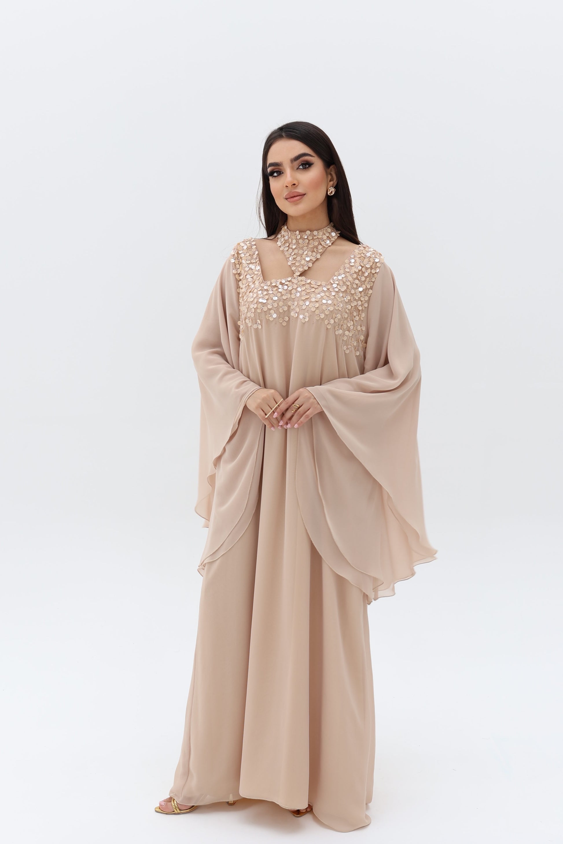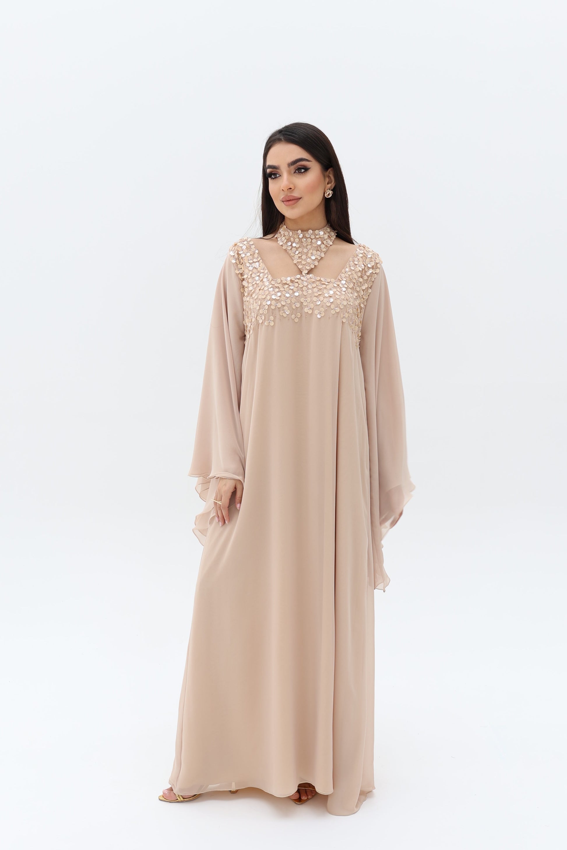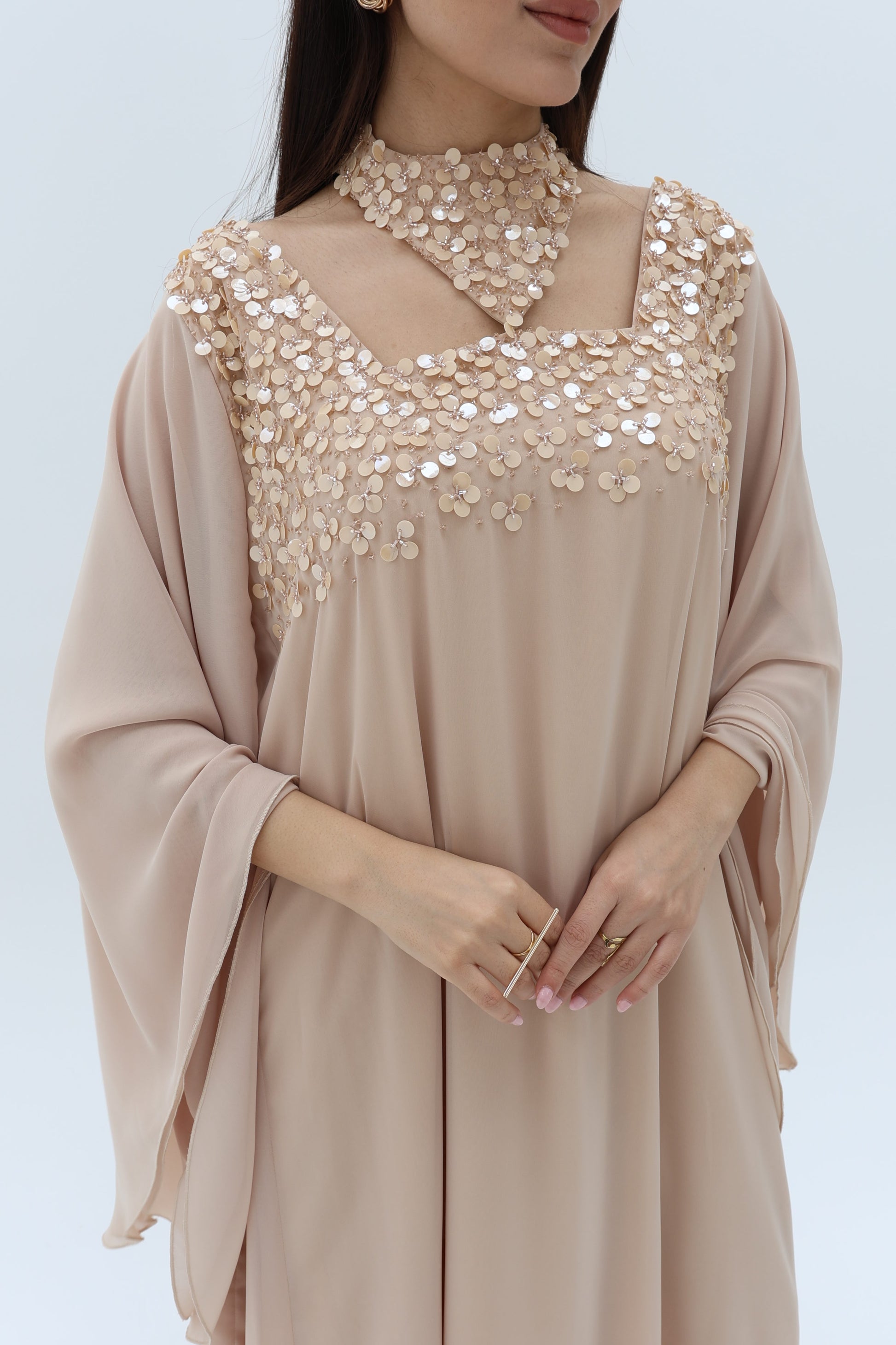 Elegant dress with beads.
