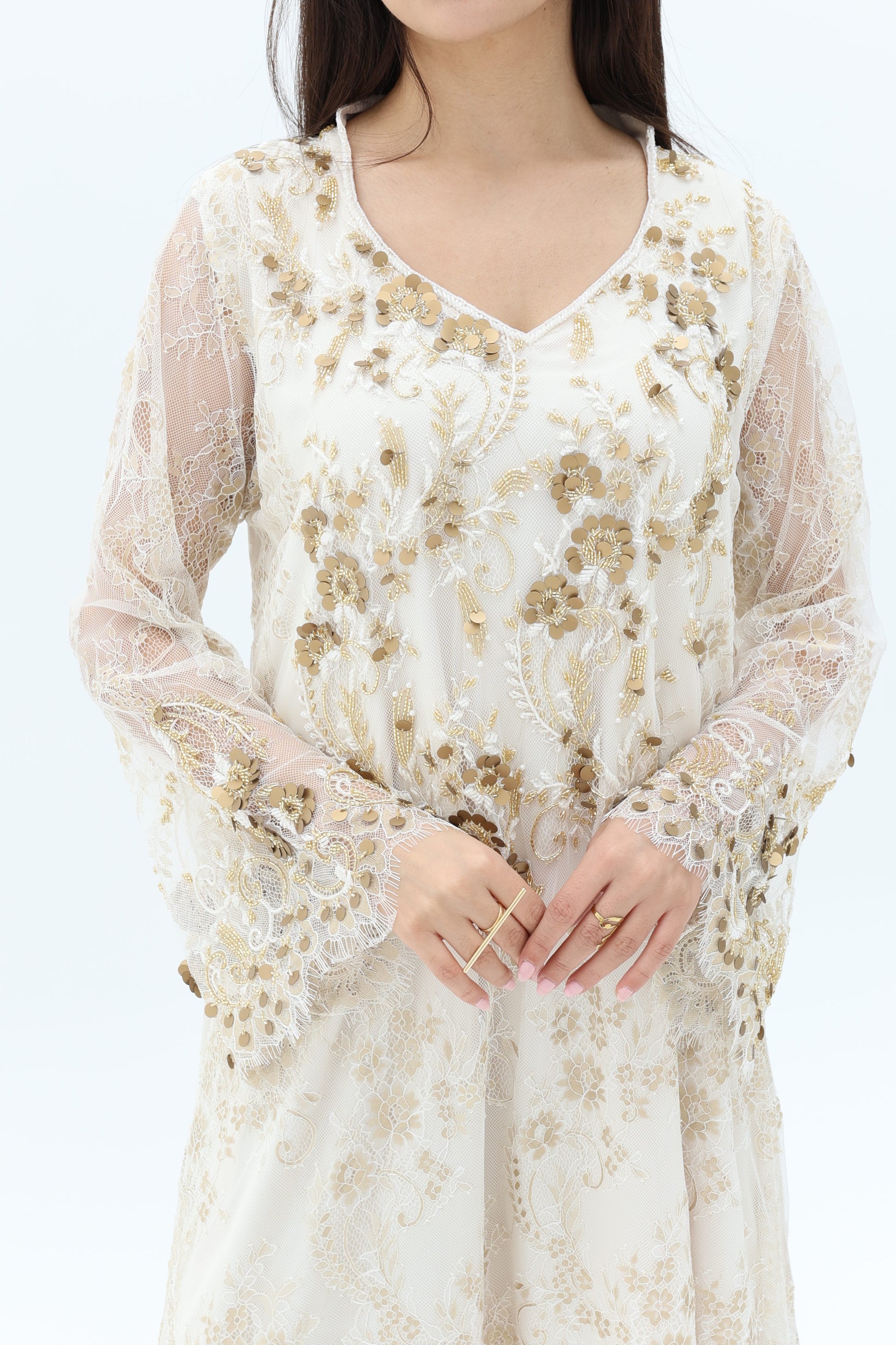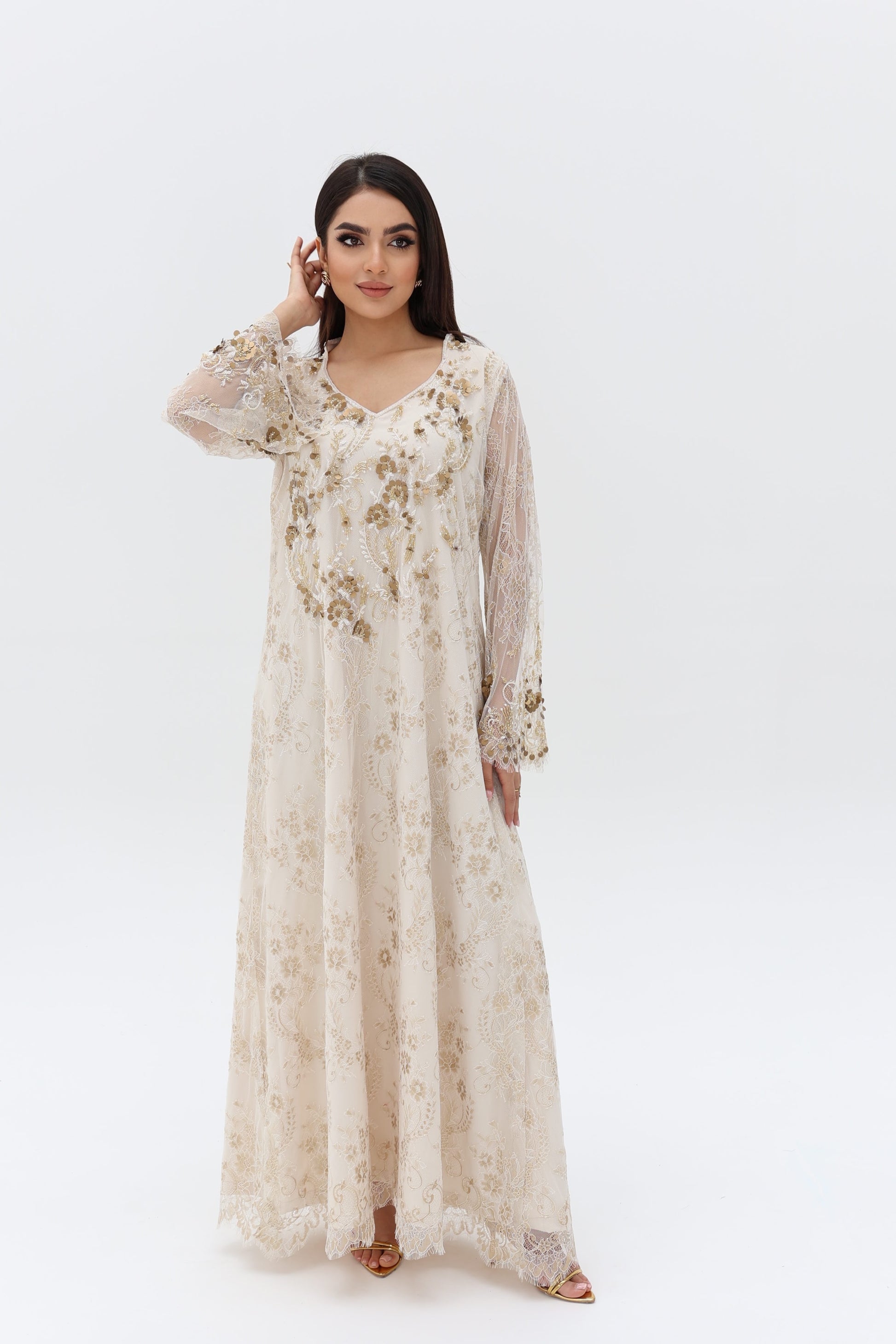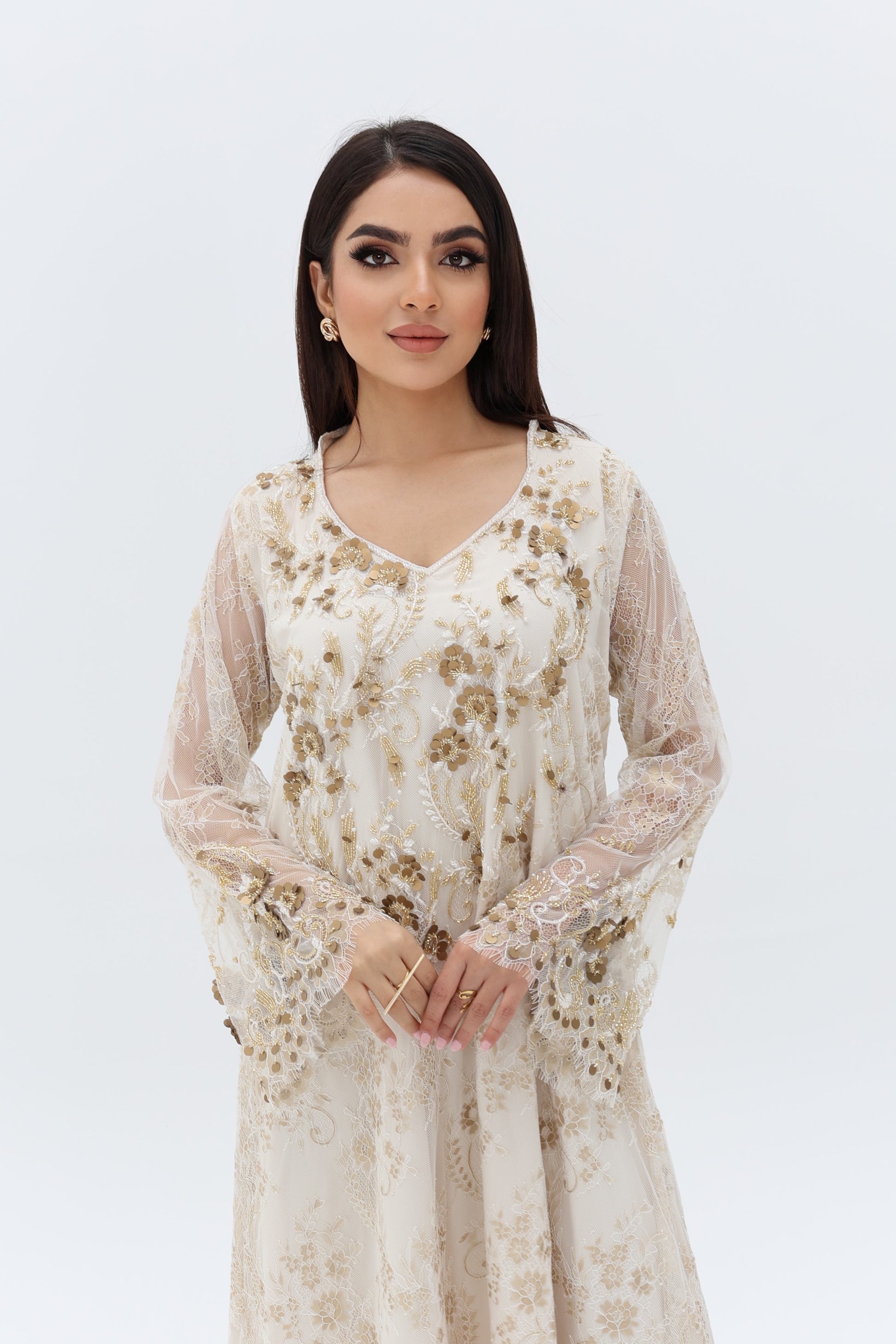Elegant dress with beads.