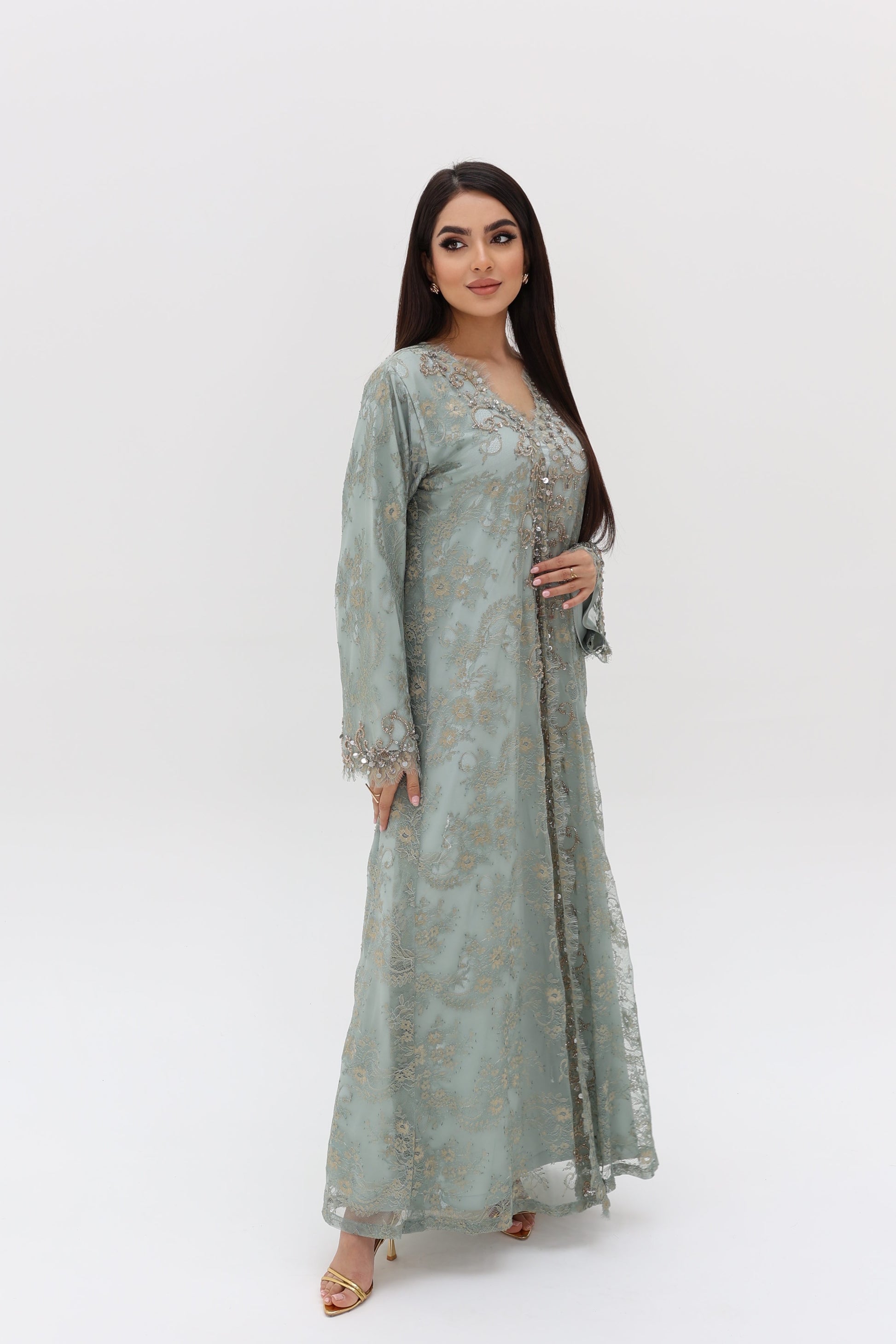 Elegant dress with beads.