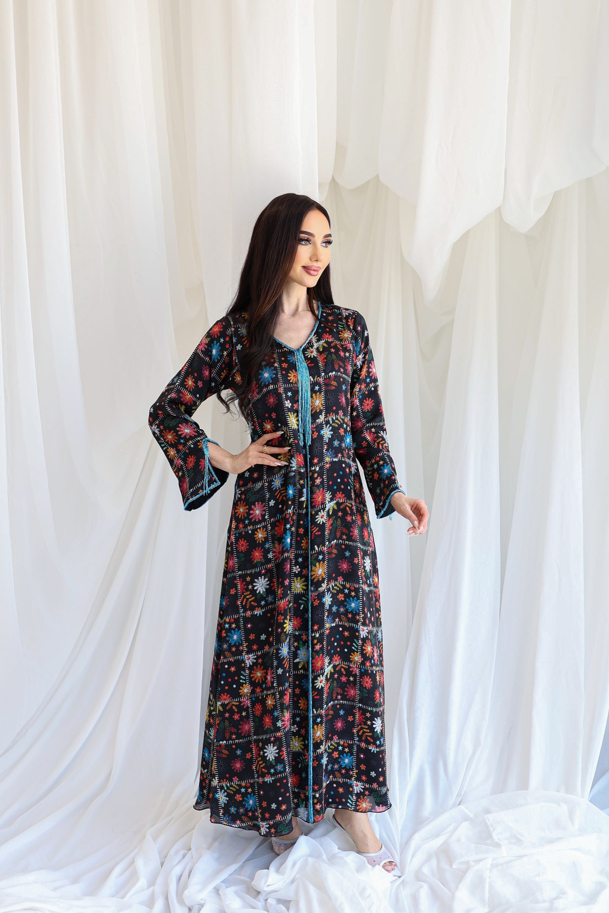 Elegant dress with beads.